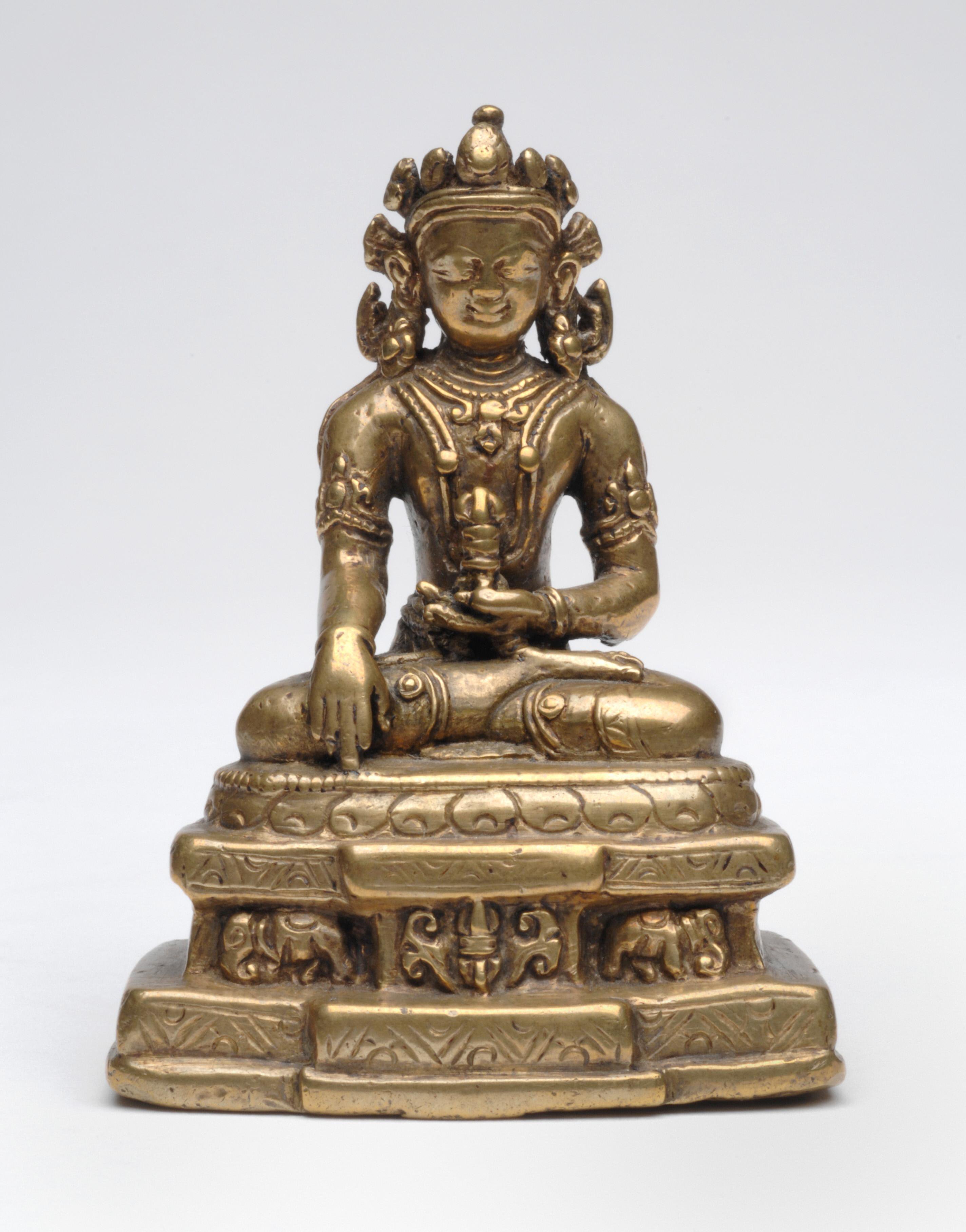 尺寸:7.6 × 5.7 × 4 cm 年代:16世纪 质地:Copper alloy with mercury gilding 风格:尼泊尔 来源:(美国费城艺术博物馆 参阅:外部链接 鉴赏: