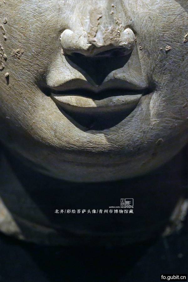 尺寸:不详 年代:北齐 质地:石雕 风格:中原 备注:青州市龙兴寺遗址出土 来源:青州市博物馆, 后借调到山东省博物馆 鉴赏: 北齐的微笑! 这是本站站长最喜欢的佛首, 没有之一.