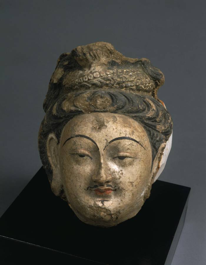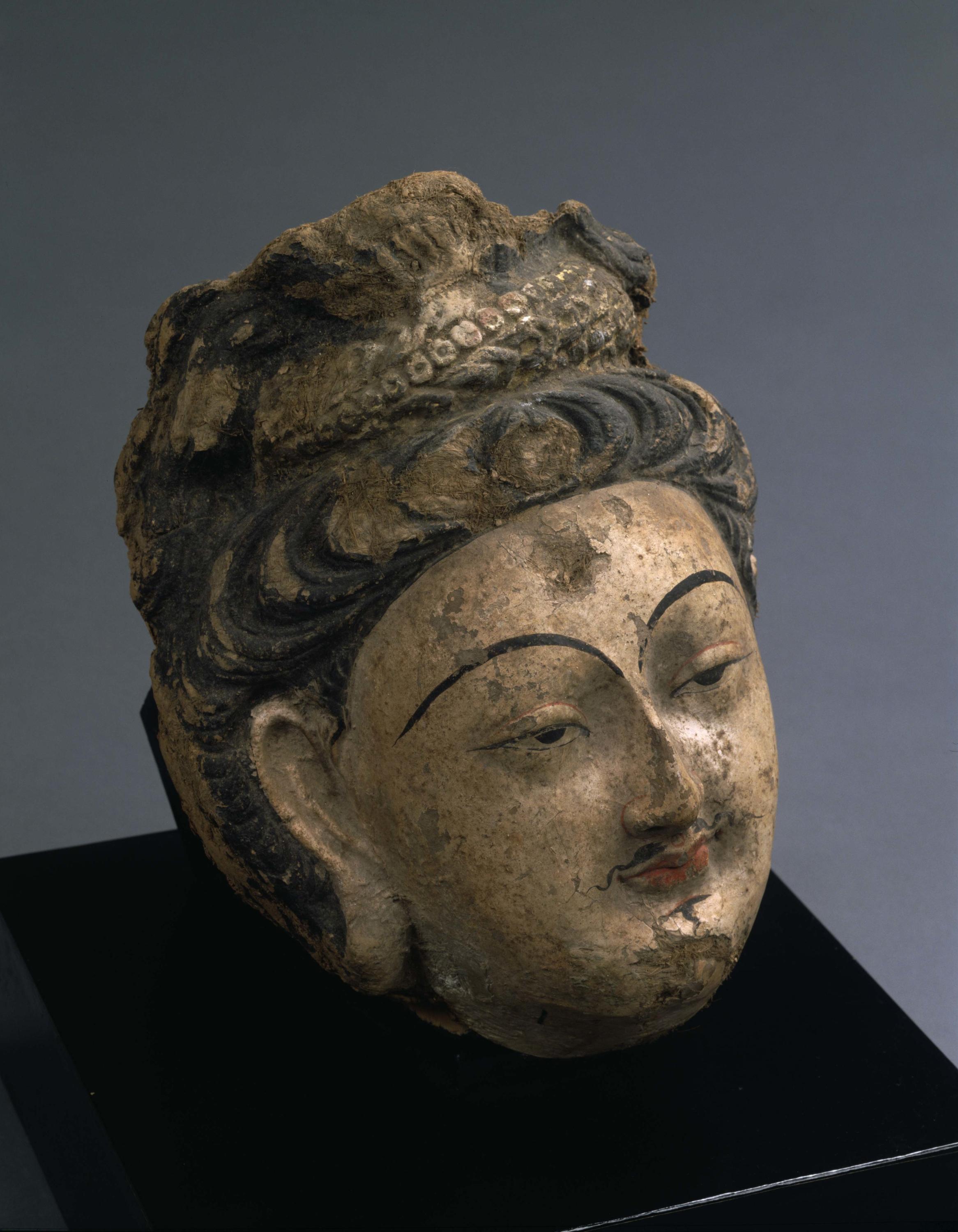 尺寸:不详 年代:7-8世纪 质地:泥塑彩绘(Clay with pigment) 风格:新疆 来源:东京国立博物馆 参阅:外部链接 鉴赏: 出自库木吐喇千佛洞: Kumtura Caves, Xinjiang