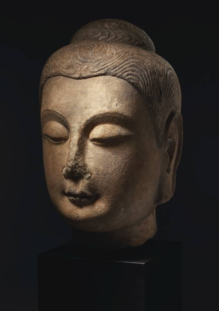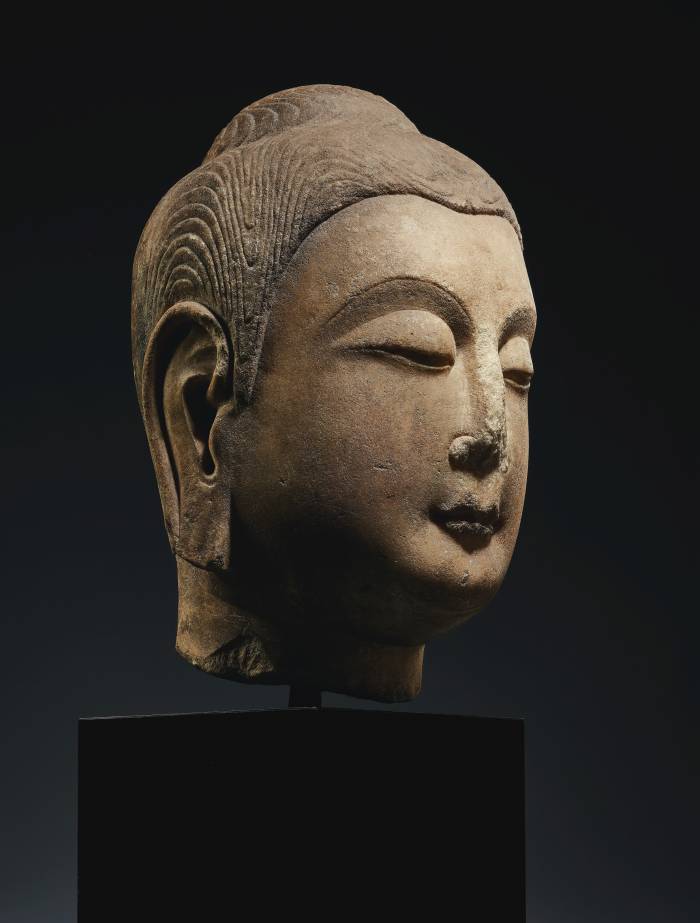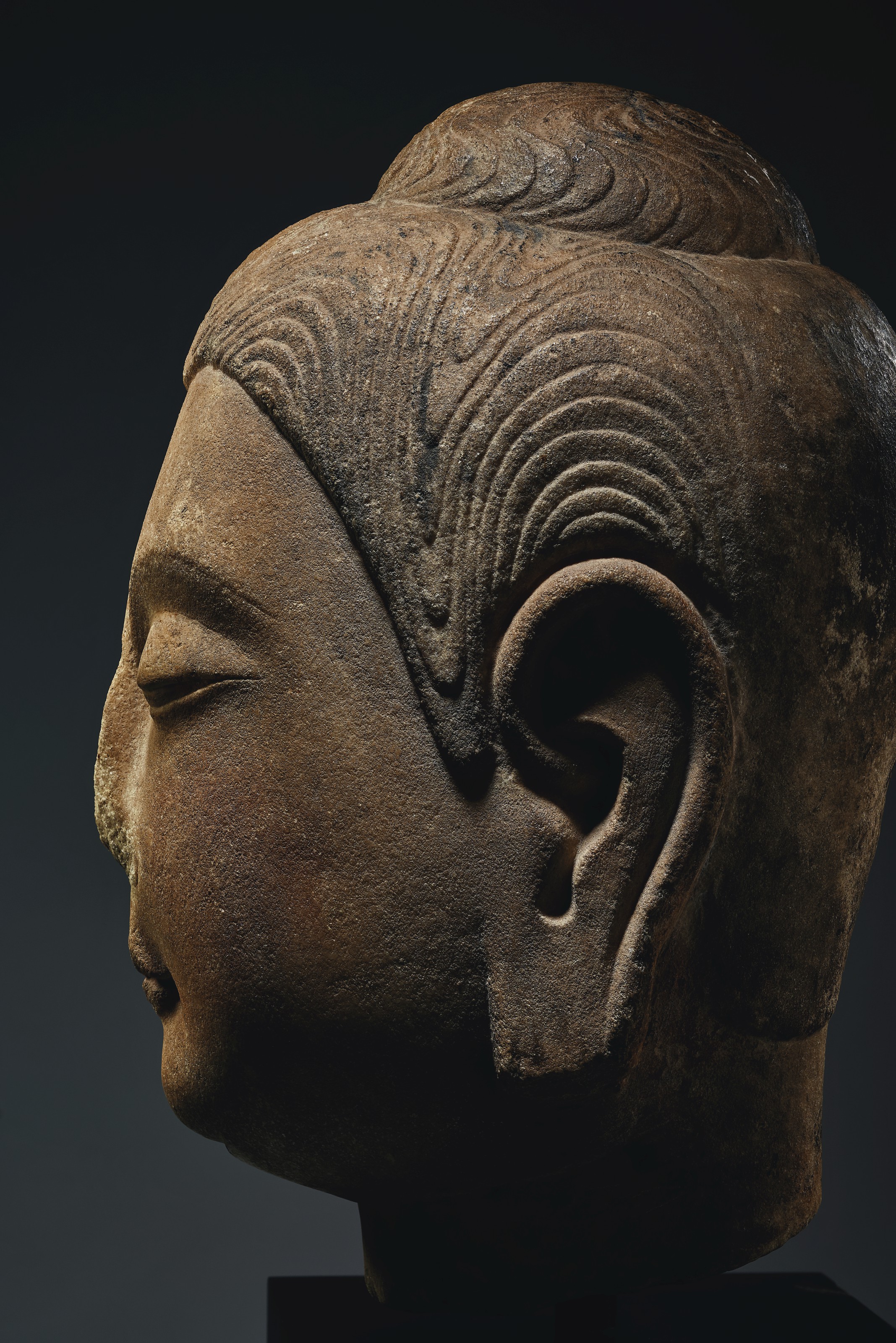 A VERY RARE AND IMPORTANT MARBLE HEAD OF BUDDHA