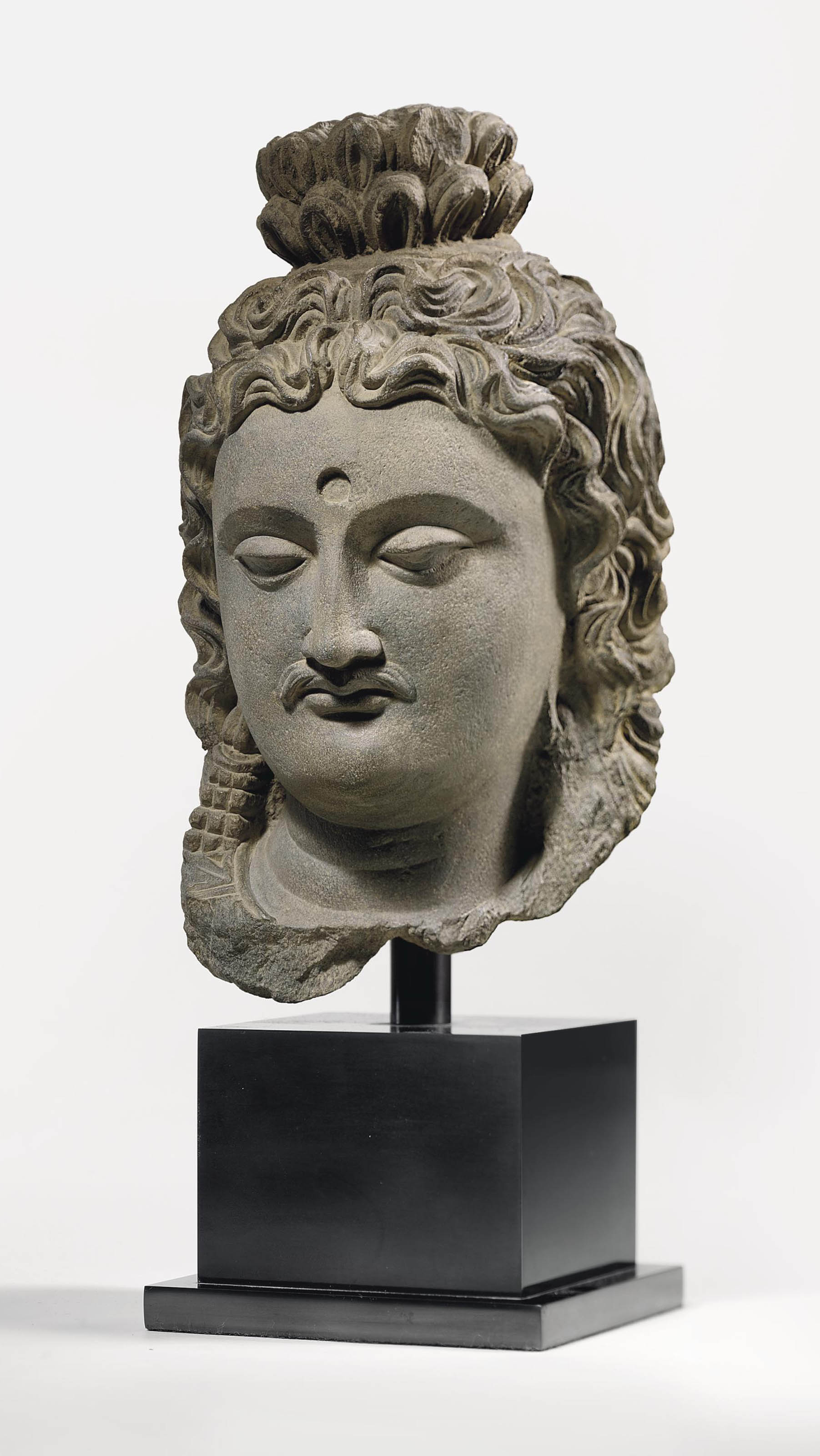 A FINE GREY SCHIST HEAD OF GAUTAMA SIDDHARTA