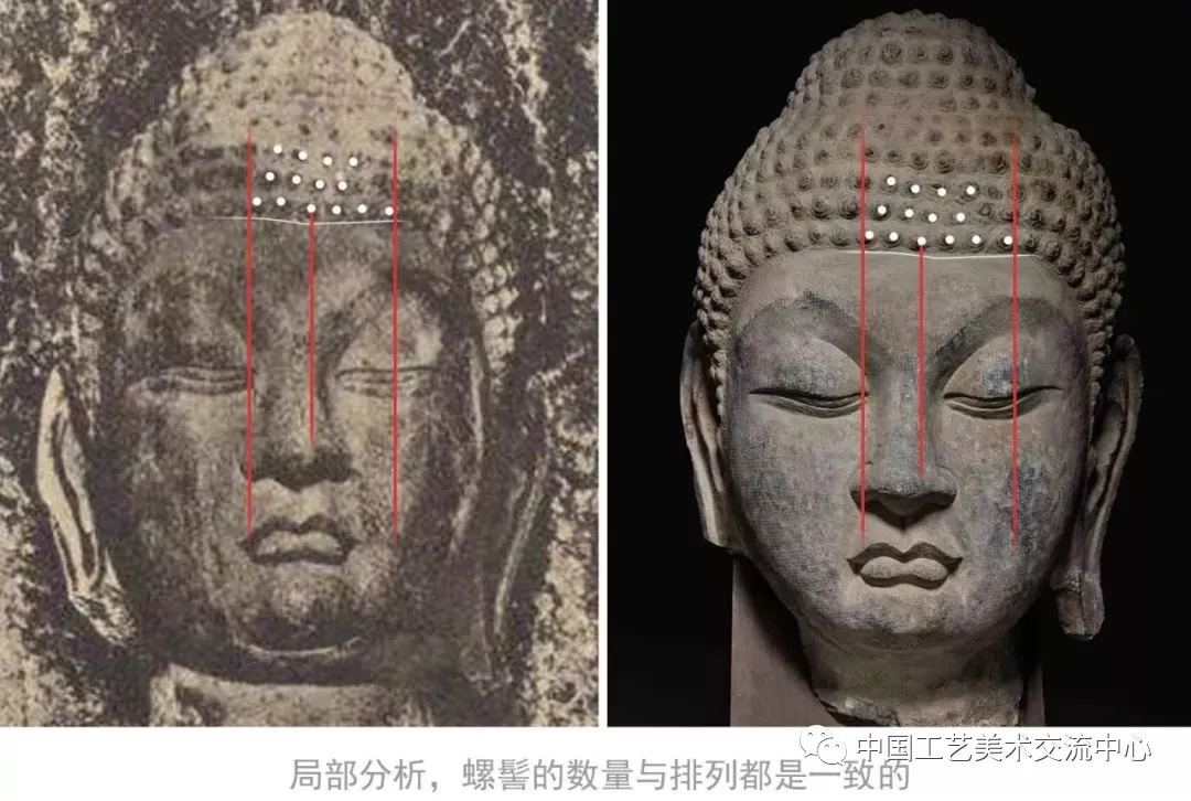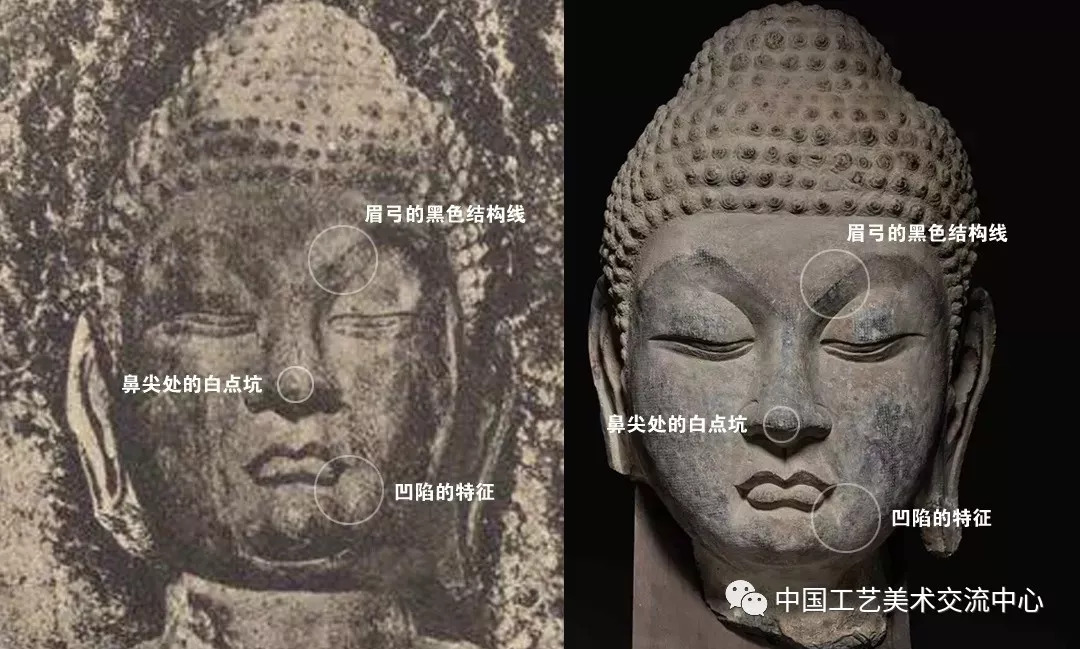 《支那文化史迹》中龙门石窟佛首与苏富比展览佛首对比。《支那文化史迹》中龙门石窟佛首与苏富比展览佛首对比。
