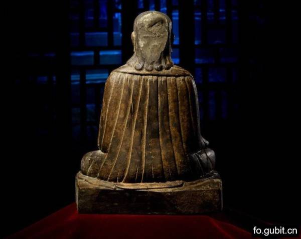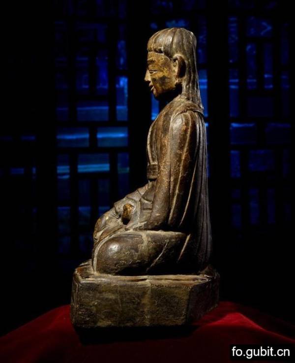 此尊上师披覆肩袈裟,面部丰腴,脸型微胖,高挑眉,深眼窝,目光下视,呈三昧禅定之相,鼻翼丰厚,嘴唇厚实,嘴角上扬,眼睑微垂,表情和煦。右手结触地印,左手结禅定印,跏跌坐于蒲团之上。整体造型端庄,小腹微挺,身型敦厚有力,刻画写实传神,作为木质佛像,历经数百年的时光,品相还能如此完美,加上尺寸巨大,在造像底部后又有原装藏,实属罕见,值得我们好好珍惜。
