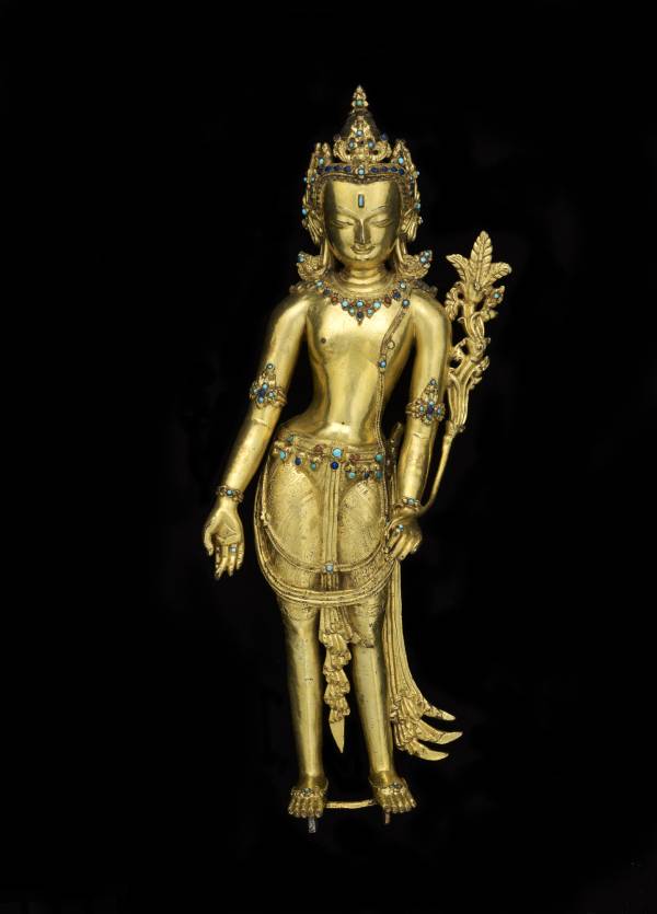 香象菩萨,以香教化众生,香气喻为佛法,使众生嗅此法香皆发菩提心。此像造型优美、人物形象清纯典雅,通身镶嵌各色宝石。虽经近七百年历史,但其表面依旧光彩夺目。