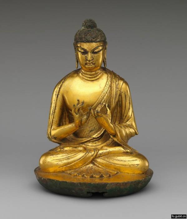 The teaching gesture made by this figure, with the thumb of the right hand touching the little finger of the left, identifies him as Vairocana, the celestial Buddha who resides at the center of the cosmos. Vairocana is considered a transcendent form of the historical Buddha Shakyamuni. Though similar in appearance, he exists on another plane, unhindered by a mortal body.