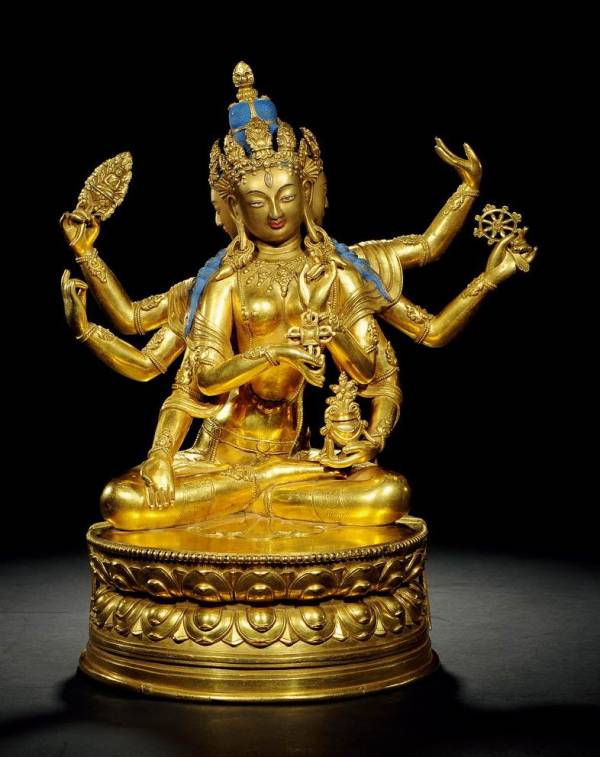 扎那巴扎尔造像是实质上的蒙古宫廷造像,开创了清代造像艺术的一座巅峰,深受佛像藏家的青睐,近年来在国内外拍卖市场上屡创高价。该尊胜佛母像题材尊贵少见,是这一风格造像的典型代表,其艺术性、体量与品相均十分出众,极具收藏价值。