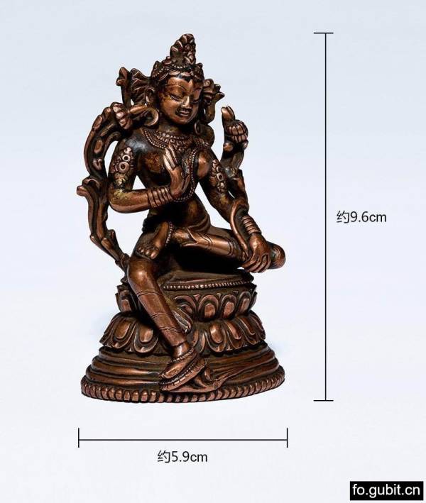 工匠对度母肌肉线条的刻画极为细致,此尊造像整体线条力度十足,其肢体塑造具有曼妙的曲线,例如呈半悬空状的右手、微曲的右腿,这些姿态不仅曲线柔美,同时还不失动感,给人以饱满的活力。该造像整体造型精巧,法相庄严,比例精准,体态婀娜多姿,工艺娴熟精湛;充分表现了度母慈悲与智慧双圆的宗教特质,以及西藏造像青春秀美的艺术韵味,从风格上看是典型的15-16世纪西藏对帕拉王朝造像的复古作品,也是同时期造像中难得一见的精品之作!真正懂得喜马拉雅艺术的朋友才能深刻理解这尊绿度母造像的妙处!!