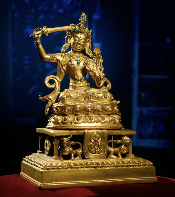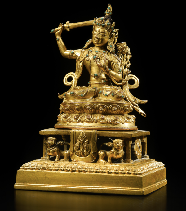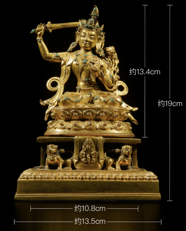 3、中国嘉德2018年春拍,Lot3038,西藏15世纪铜鎏金文殊菩萨,成交价:RMB 782,000