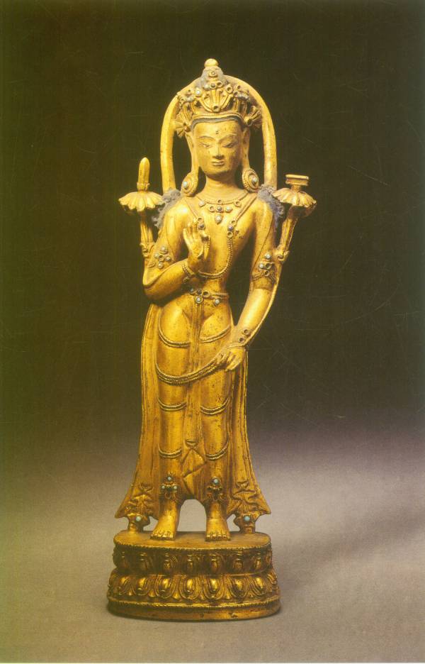 尺寸:高25.5cm 年代:明代 质地:黄铜 风格:西藏 来源:北京故宫博物院 参阅:杨新、王家鹏主编.中国藏传佛教雕塑全集 第2卷 金铜佛•上.北京:北京美术摄影出版社,2002.1 鉴赏:
