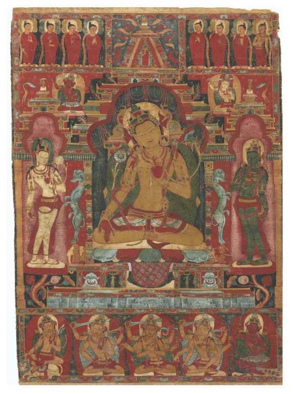 质地:唐卡(Opaque pigments and gold on textile)