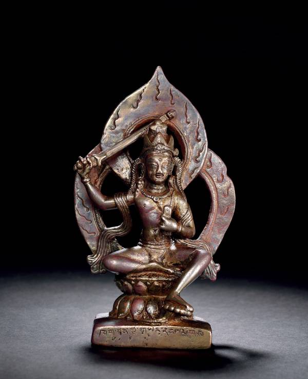 在藏传佛像艺术早期发展史上,克什米尔(藏语称「喀且」)无疑是一个特别值得注意的地区:一方面它以独特的地理位置,传承古老的犍陀罗艺术,并形成独特的地域造像流派和风格,成为南亚次大陆佛像艺术风格中不可忽视的重要一支;另一方面以毗邻我国西藏西部的地缘关系,对我国西藏西部佛像艺术产生了巨大而深刻的影响,成为我国西藏佛像艺术的重要源泉之一。一直以来,克什米尔造像以鲜明的风格、独特的工艺辉耀于国际艺术品市场,广受世界范围内佛像收藏和爱好者的青睐和追捧。今春香港保利拍卖公司推出的这尊文殊菩萨像就是一尊典型的克什米尔风格造像,由此可以看到克什米尔造像独特的艺术风貌和风格特点。