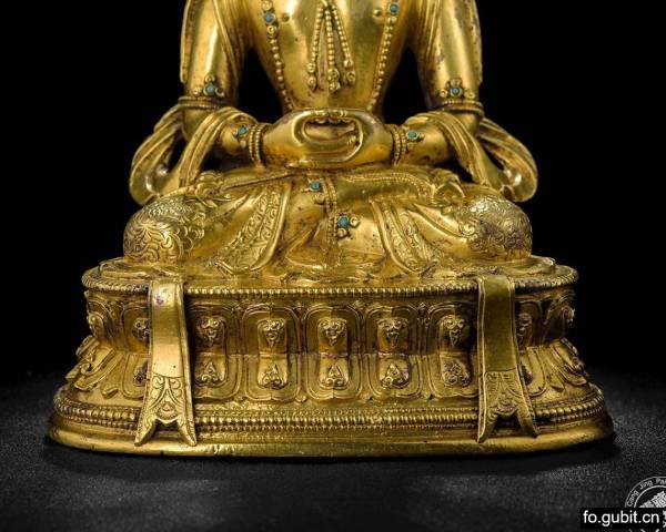 此尊康熙宫廷无量寿佛,拥有尊贵的宫廷气派,鬼斧神工的铸造技艺,登峰造极的鎏金光泽,把佛教造像的华美瑰丽推向高潮。清代由于宫廷的推崇,藏传佛教得到发扬光大,为了达成观瞻、供奉的修行,金铜造像艺术盛行,资财雄厚的大清帝国,开创了独有的清皇气度。本尊美轮美奂的无量寿佛是佛教精神世界的完美展现。佛像铜质厚重,加工精良,宝冠像圣洁的布达拉宫一样高低错落,层次分明。面相慈和,施禅定印,堪称完美。胸部肌肉丰满圆润,匀称有力,腹肌饱满,腰肢柔和,无论面容,还是身段都洋溢着高贵的气息。周身的镶嵌以及钏环、璎珞星罗棋布,身后和底座前的帛带,翻卷舞动,富丽的衣饰使无量寿佛沁润着皇家的尊贵特质,这不仅仅是风格所致,更是一个时代的风貌。饱满翻卷的莲瓣延续着明代永宣风格,这在清代后期造像中实为少见,值得仔细体味和珍惜,喜欢宫廷造像的朋友,而且又是一尊题材非常适合供奉的无量寿佛,千万不要错过。