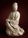 德化窑白瓷佛造像达到艺术巅峰,景德镇彩瓷佛像亦蓬勃发展。德化白瓷(明清鼎盛):胎釉一体,胎质致密,釉色乳白如凝脂(“象牙白”“猪油白”)。以手工雕塑为主,大师何朝宗等人开创“捏、塑、雕、刻、刮、削、接、贴”八法。衣纹流畅自然,如出水飘带。造型多见观音、达摩、如来等题材,神态慈悲静谧,注重人物气质表达。