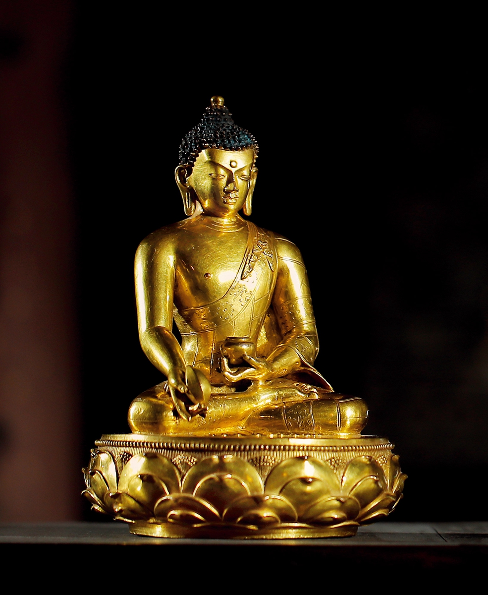 17世纪蒙古扎纳巴扎尔风格铜鎏金药师佛坐像(西冷印社)