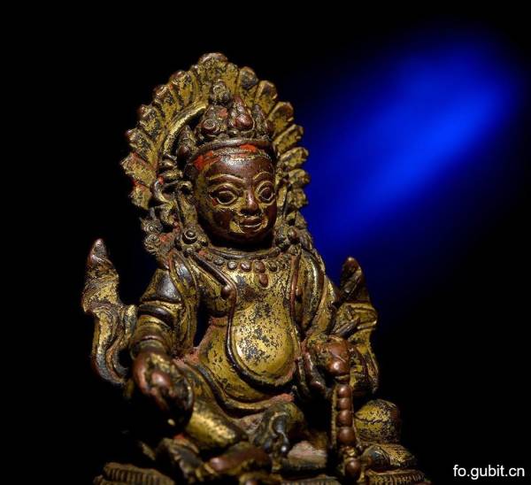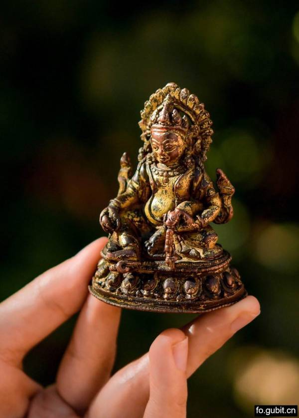 名称:明代尼泊尔紫铜鎏金黄财神随身佛