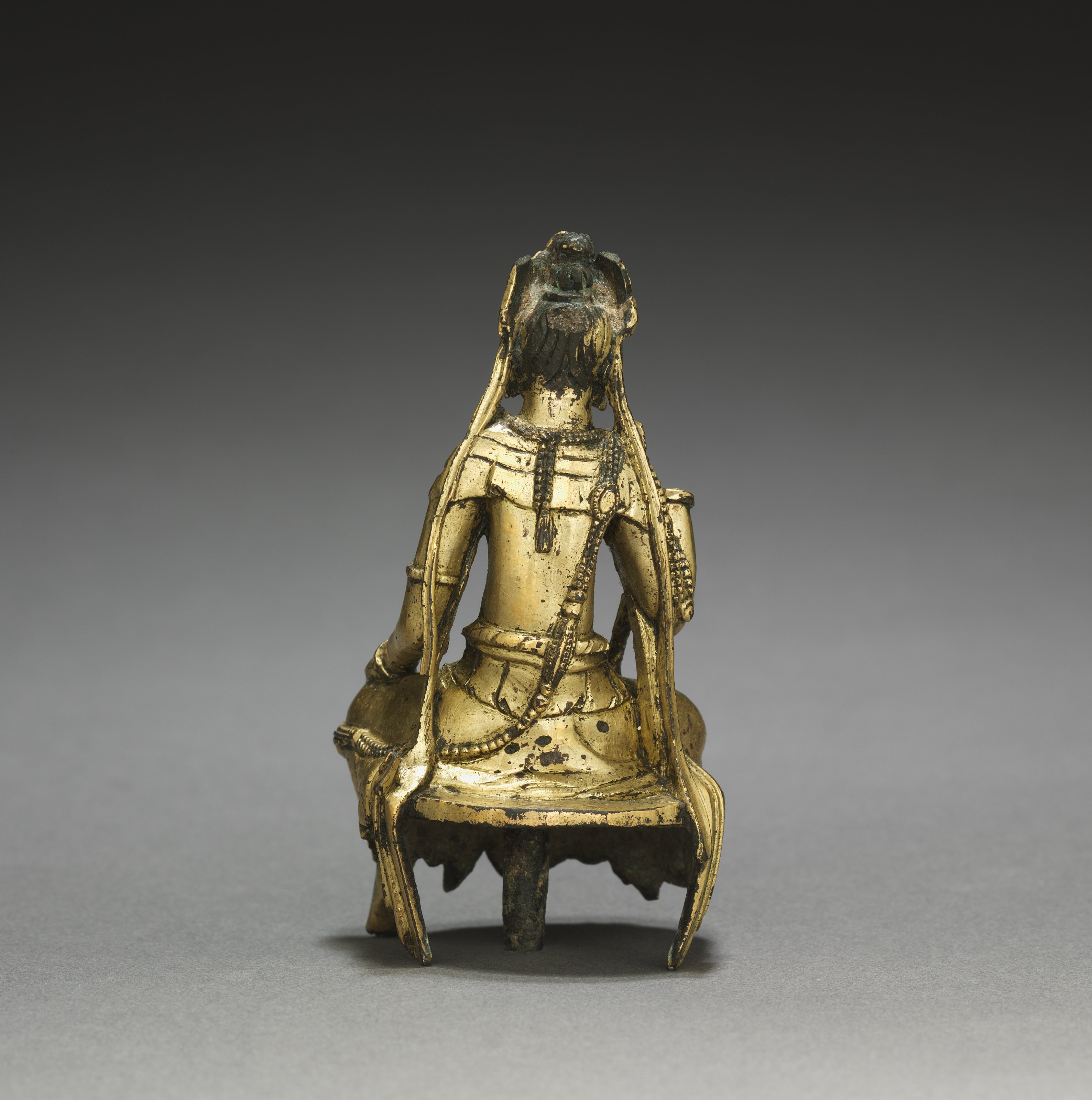 Portable Buddhist figures and objects like this gilt bronze had a variety of uses. They could have been carried in religious processions. Others could serve as donations, souvenirs, or votive items in the context of pilgrimages to religious sites. Their miniature size also made them appropriate for placement on private altars or shrines for personal devotion.