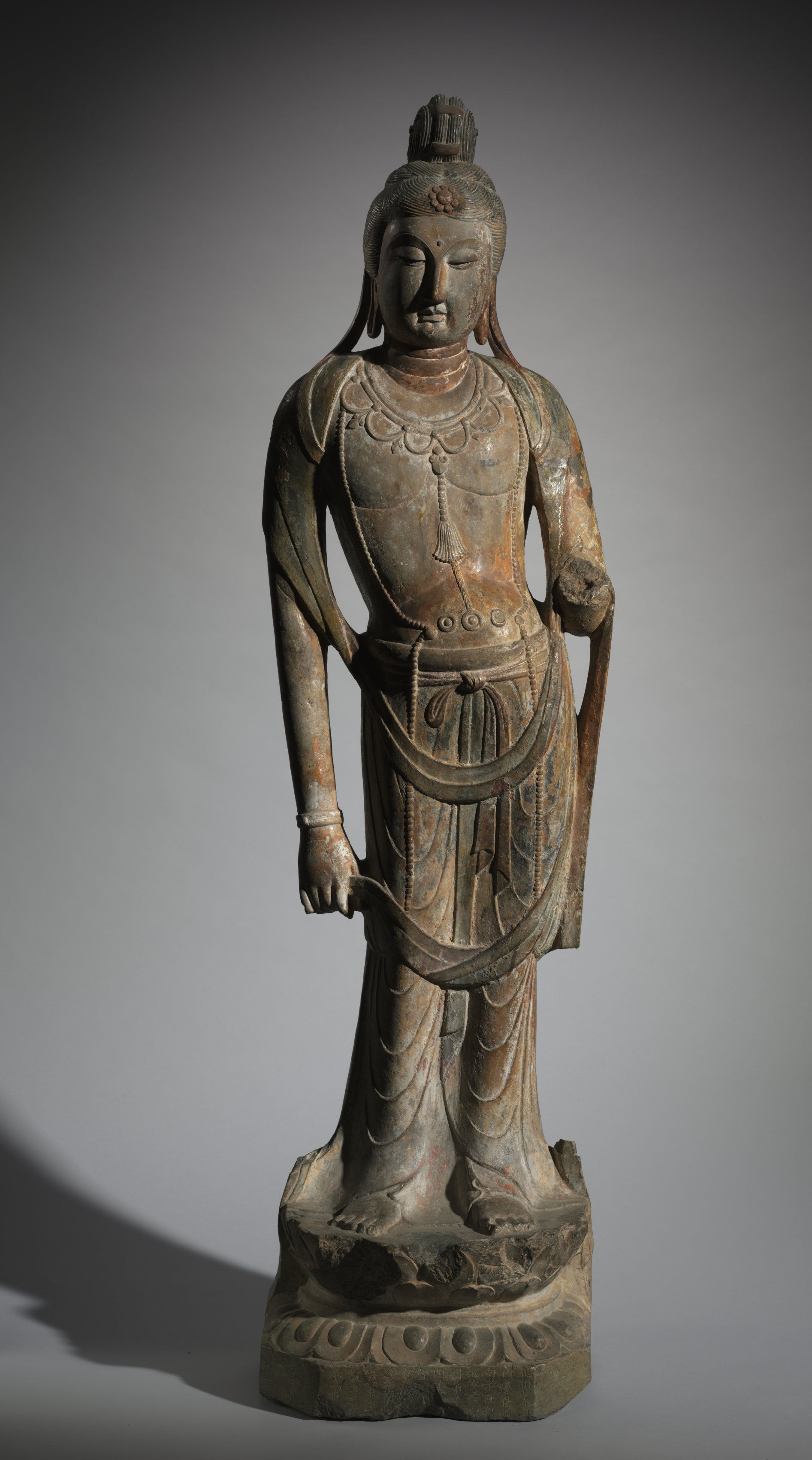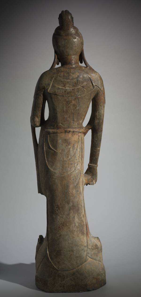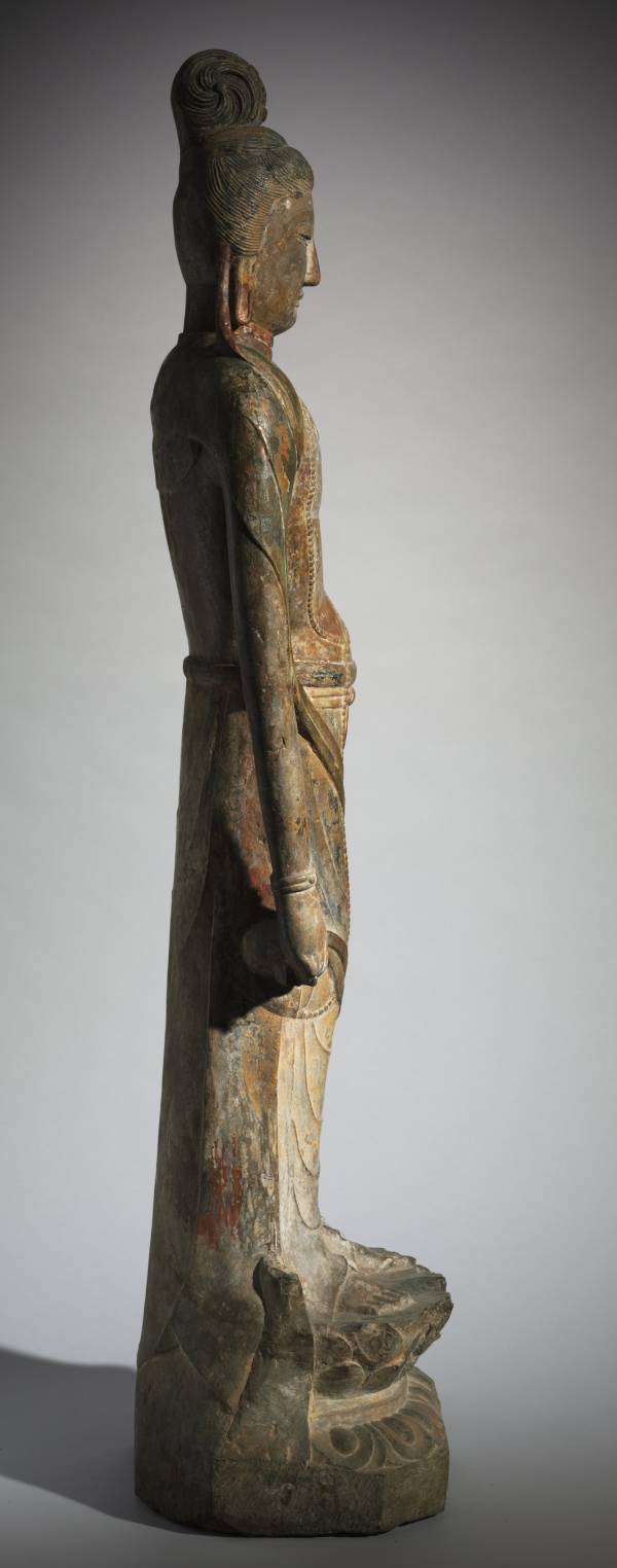 The statue is identified and dated by an inscription to 687. There is a marked restraint and stately elegance of the well-proportioned figure standing in a relaxed pose.