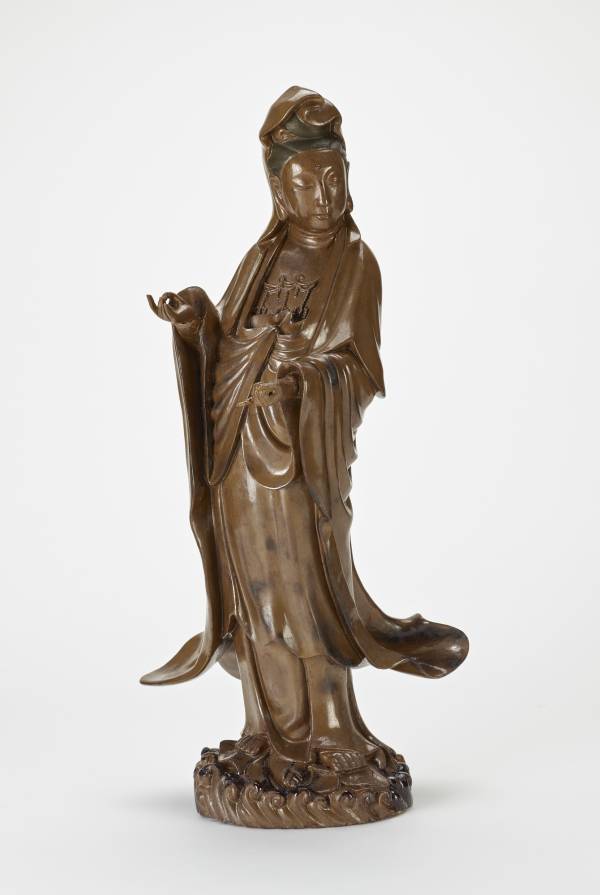 Bodhisattva Avalokiteshvara (Guanyin) standing on a lotus emerging from waves
