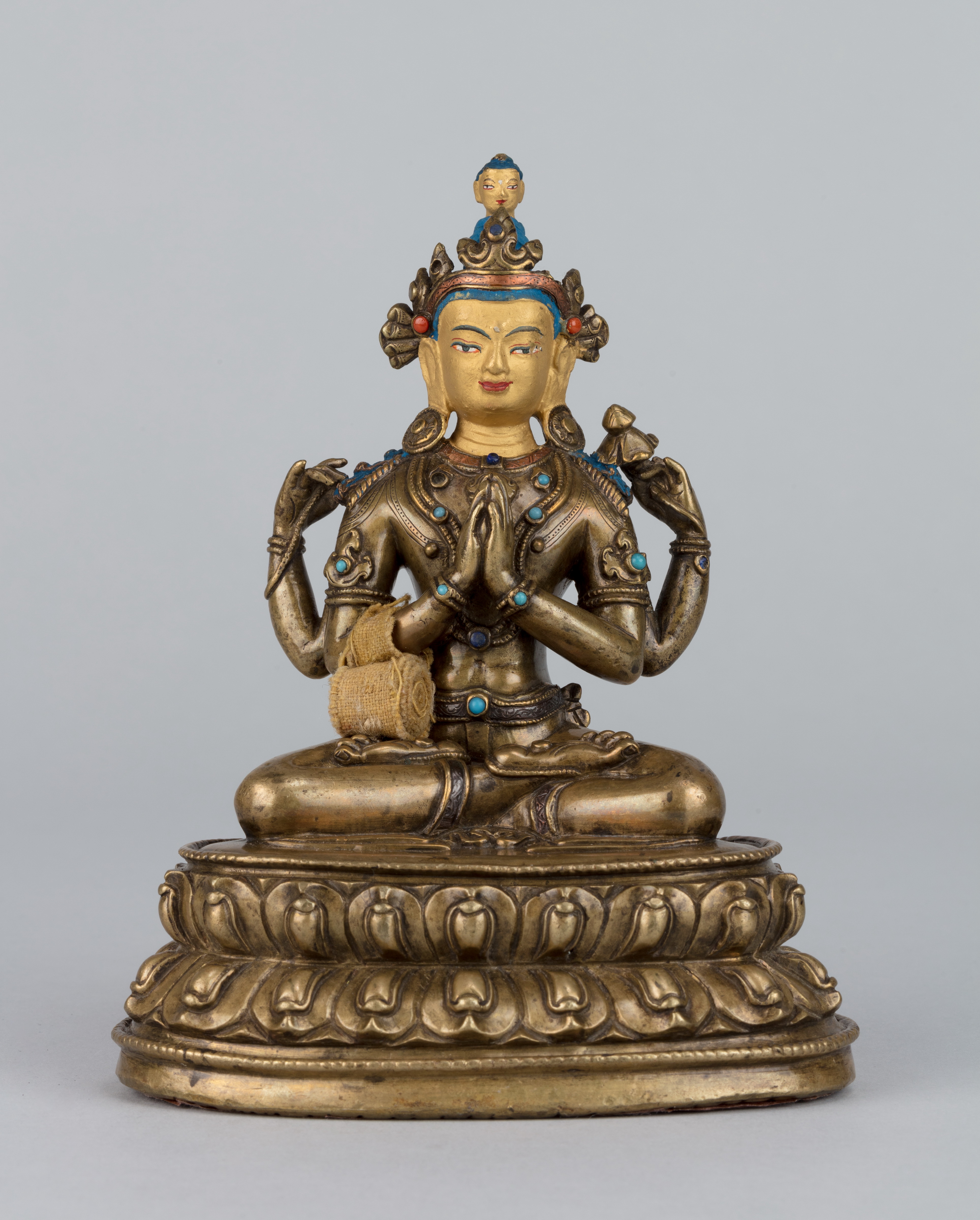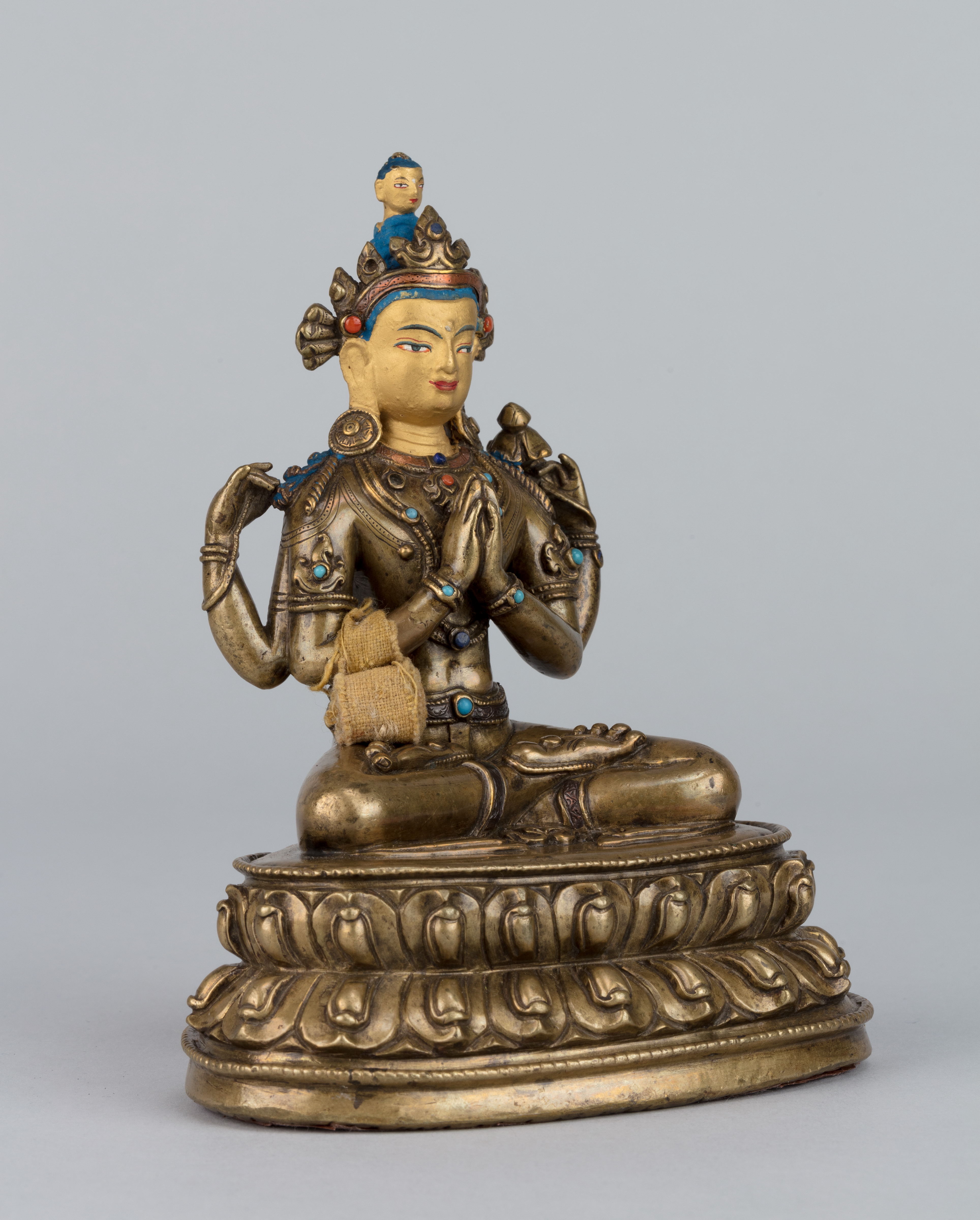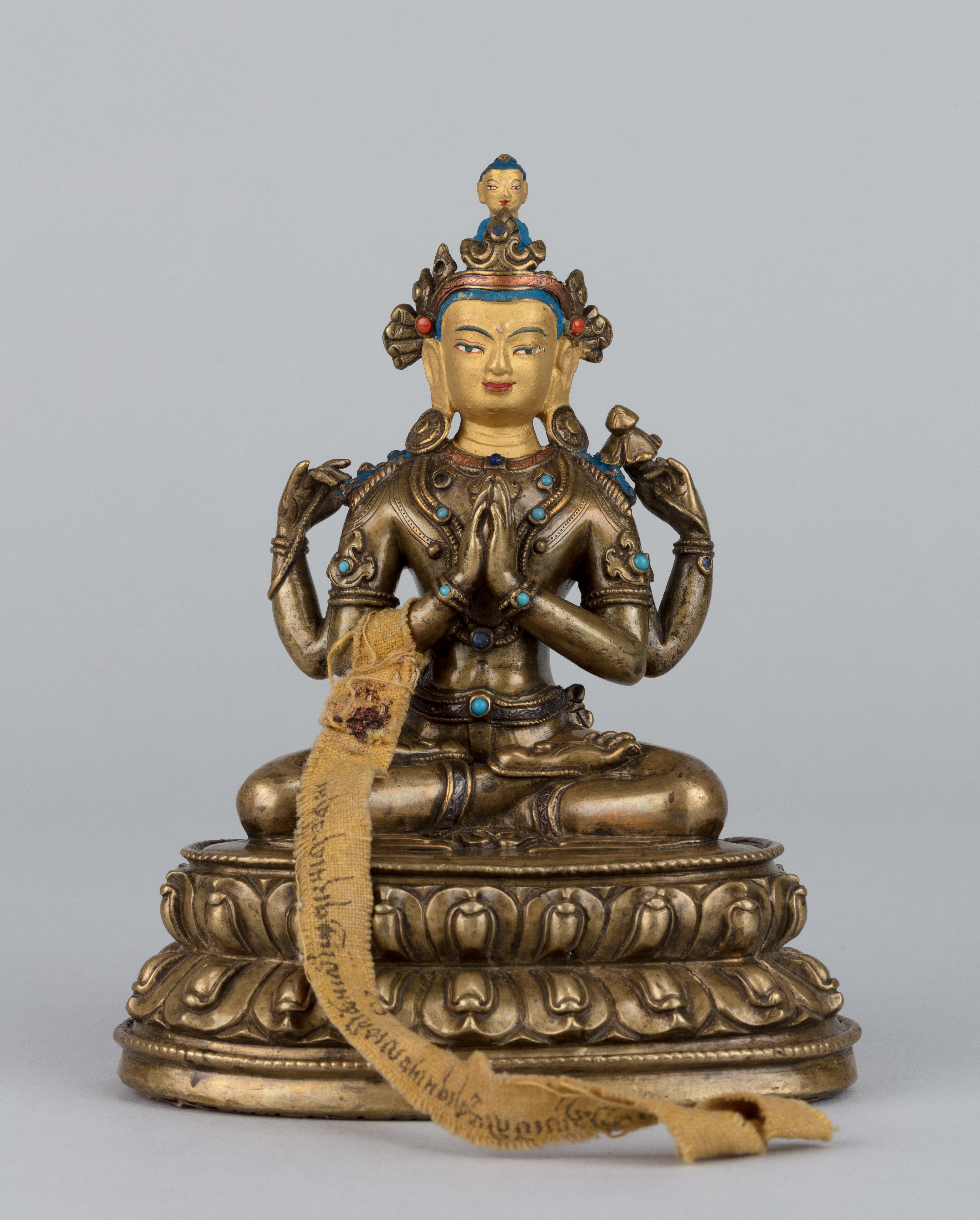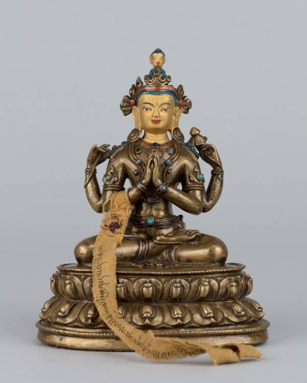 质地:合金铜(Copper alloy with mineral pigments, semi-precious stones, cloth)