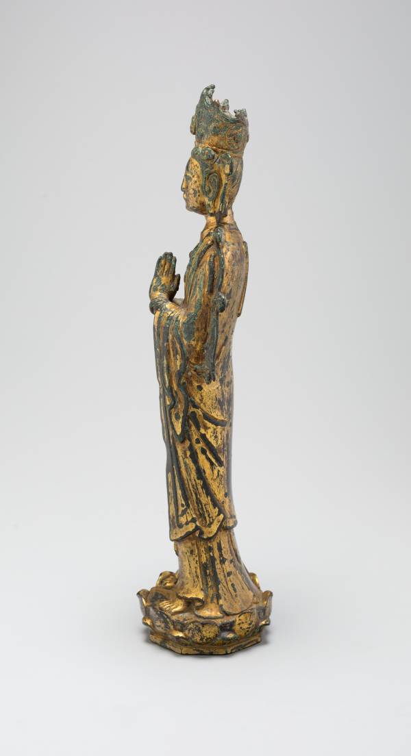 尺寸:34.4 × 9.8 × 8.7 cm 年代:辽代 11世纪 质地:铜鎏金 风格:中原 来源:芝加哥艺术博物馆 参阅:外部链接 鉴赏: Guanyin (Avalokitesvara) Liao dynasty (907–1125), 11th century China