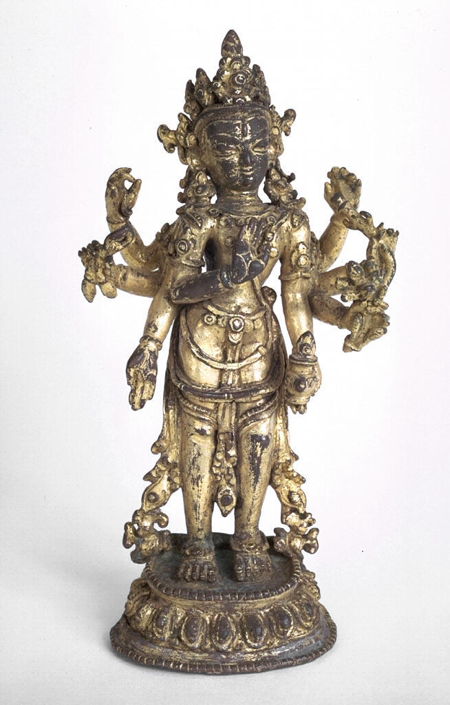 尺寸:H. 5 7/8 in 年代:17-18世纪 质地:铜鎏金 风格:尼泊尔 来源:旧金山亚洲艺术博物馆 鉴赏: