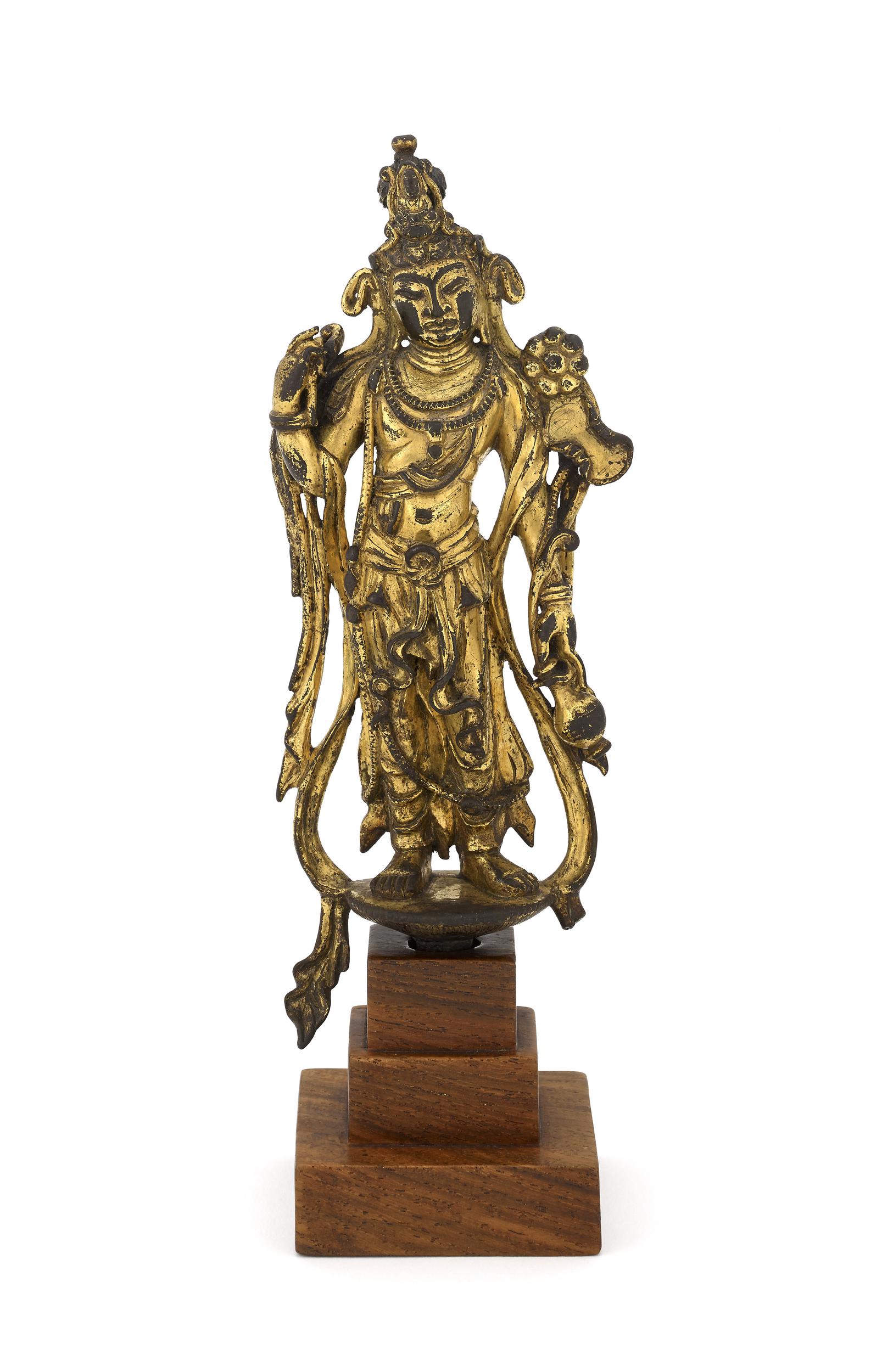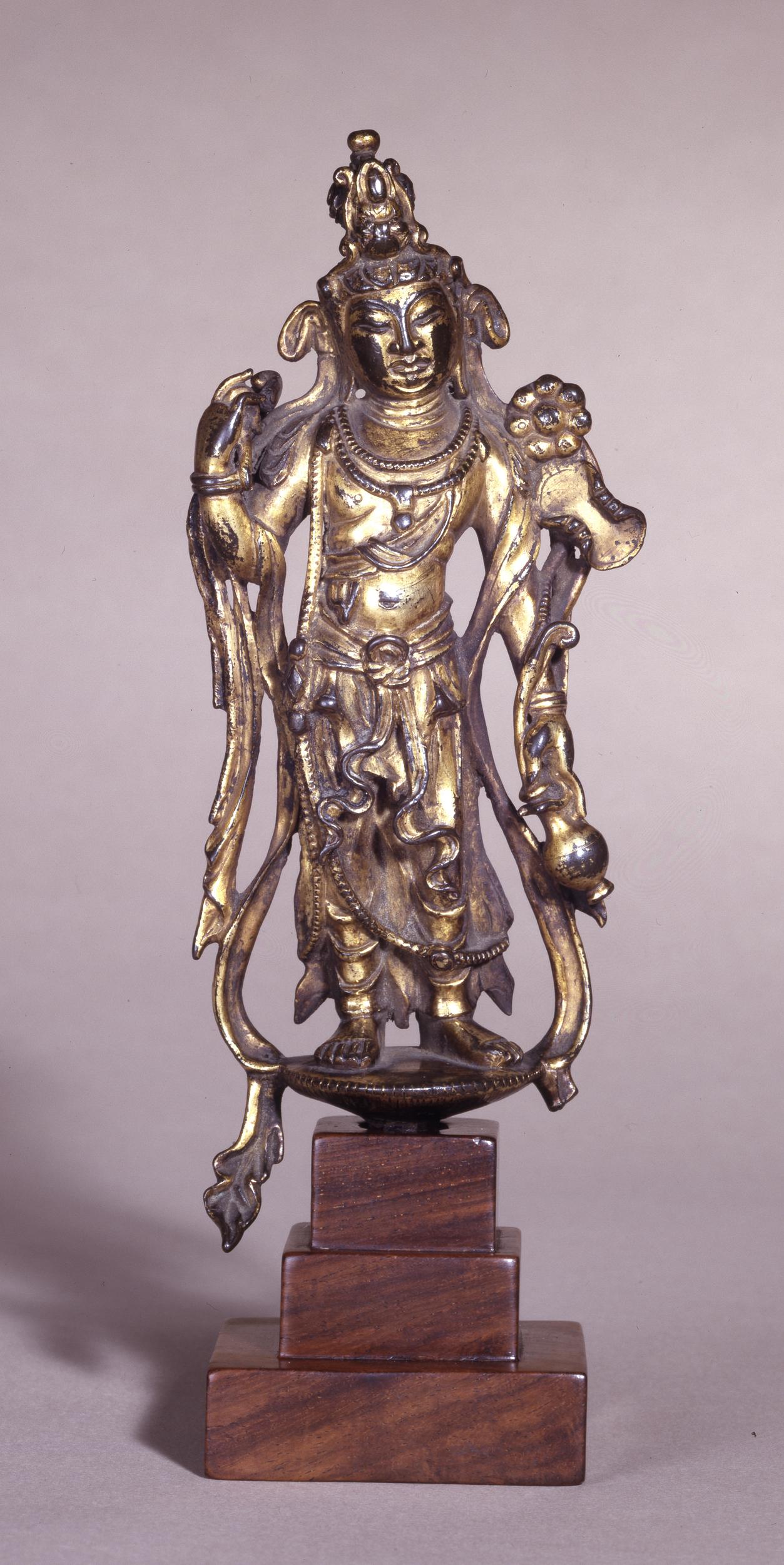 This small gitl bronze is an intimate image, either from a household altar or possible made for dedication by an individual to a shrine.