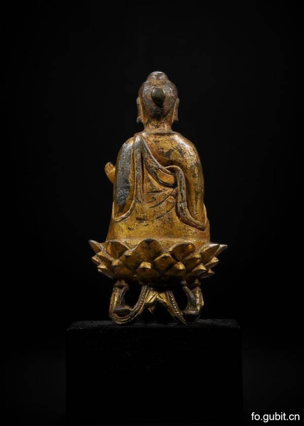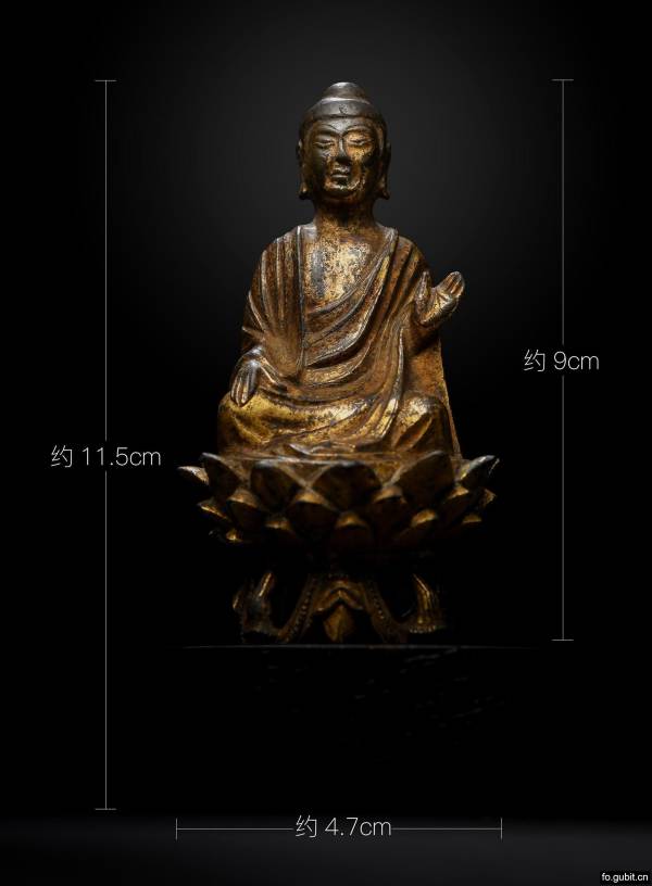 来源: 1、日本和泉市久保惣记念美术馆旧藏 2、国内私人收藏 著录: 1、《六朝时代的金铜仏:特别展示》,和泉市久保惣纪念美术馆,日本,1991年(图二、三) 2、《虔生出净世-中国古代汉传佛教造像精粹》浙江省博物馆编 文物出版社 第58页。(图四、五、六) 参阅: 1、美国纳尔逊美术馆藏 初唐 佛说法坐像(图一) 2、保利香港2014年春拍,Lot 3217,北齐或隋铜鎏金释迦牟尼佛坐像,成交价:RMB 792,016;