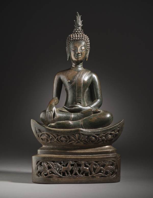 尺寸:30 x 15.2 x 9.9 cm 年代:16世纪 质地:合金铜鎏金 风格:泰国 来源:洛杉矶艺术博物馆 参阅:外部链接 鉴赏: Buddha Shakyamuni Northern Thailand or Northwestern Laos, 1563, Sculpture