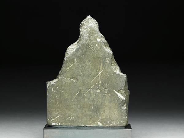 Originally the image would have had a prabha (surround) with geometric marks similar to the alternating circles and squares which decorate the front of the throne. A single letter incised on the back near the upper shoulder is apparently a later addition [4].