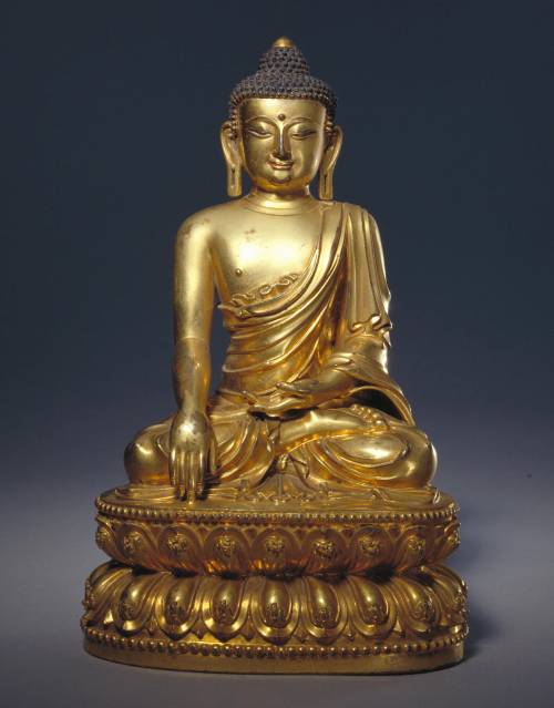 铜鎏金释迦牟尼坐像,明永乐,高22厘米。