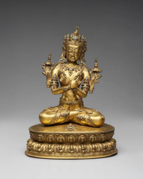 质地:铜鎏金(Bronze with gilding, inlaid turquoise, and inlaid coral)