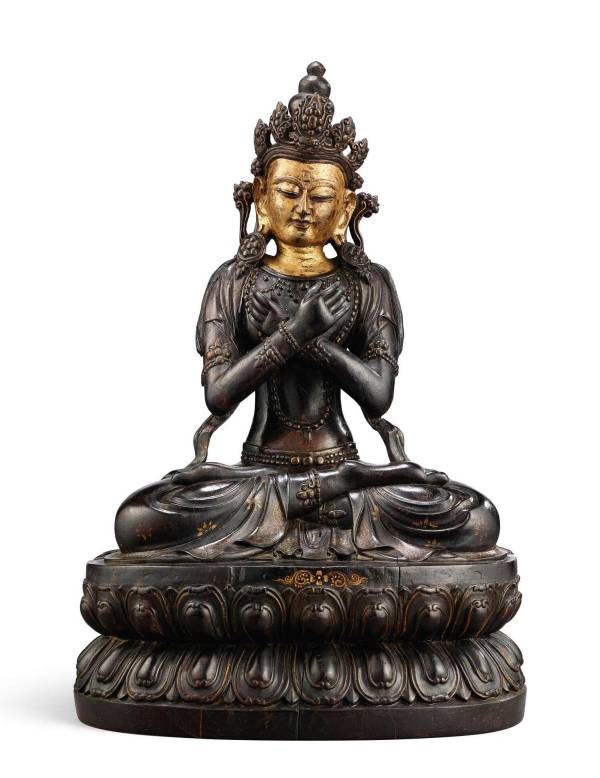 A LARGE GILT-LACQUERED ZITAN FIGURE OF VAJRADHARA