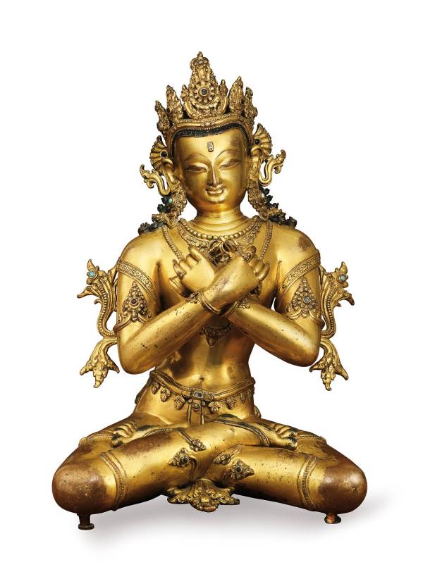 尼泊尔造像艺术在世界佛像艺术研究和收藏领域一直广受关注,受到佛像研究者、收藏家和爱好者的普遍关注和青睐。此次北京保利拍卖推出的这尊铜镀金金刚持像就是一尊典型的尼泊尔风格造像,属于尼泊尔马拉王朝时期的经典之作。同类型可参考Berti Aschmann基金会收藏14世纪尼泊尔大持金刚,及纽约亚洲艺术中心收藏早期马拉王朝时期尼泊尔菩萨坐像。