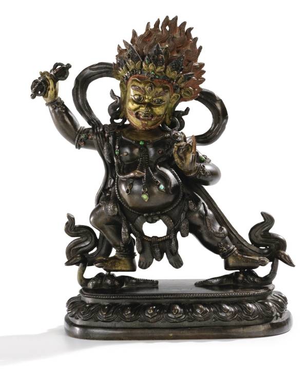 A PARCEL-GILT BRONZE FIGURE OF VAJRAPANI, QING DYNASTY, QIANLONG PERIOD