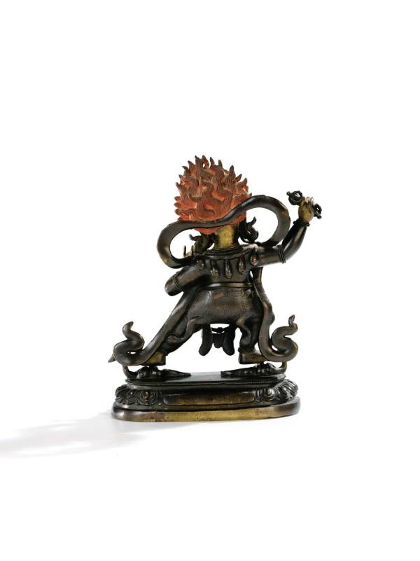 debout en pratyalidhasana, piétinant des serpents sur un socle lotiforme, le bras droit levé brandissant un vajra, la main gauche en kartari mudra, le visage courroucé au troisième œil ouvert surmonté d'une tiare, scellée (2)