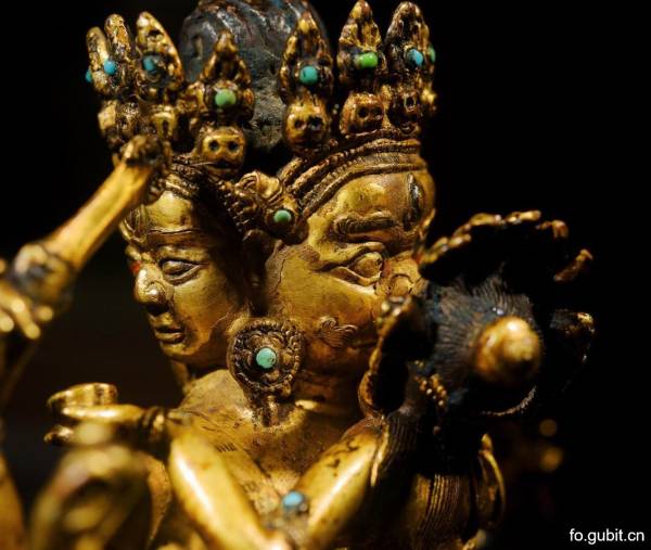 名称:15世纪西藏铜鎏金苯教护法神双身像
