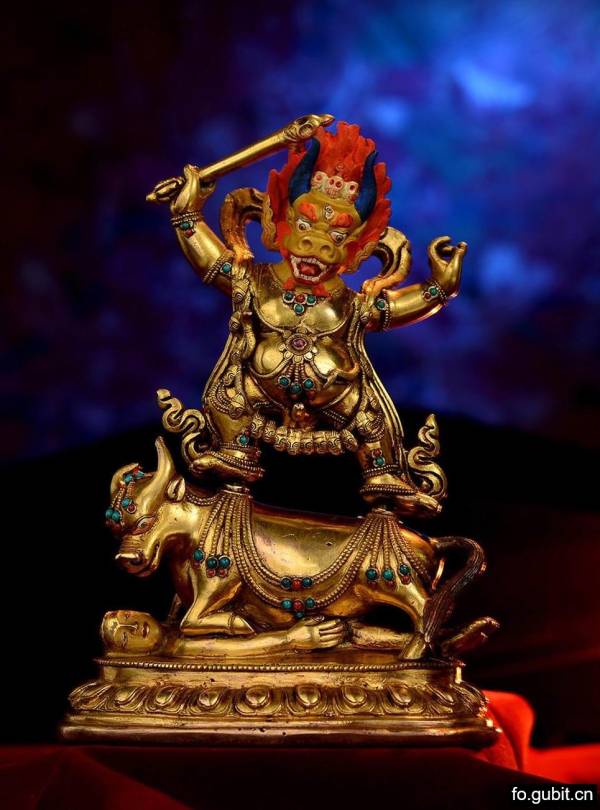 阎魔敌,亦称降阎魔敌,降阎魔尊,乃地狱之主,主管冥界,佛教将之吸收为护法神,为大威德金刚教法的主要护法;在藏传佛教中被视为是文殊菩萨化身的忿怒相,威力极大,能制服毒龙,断除诸障,对治阎罗诛魔,是无上瑜伽密续的重要本尊!佛教中认为,修持阎魔尊,可以防止外界带来的灾难,保护家院和修行者的安全!