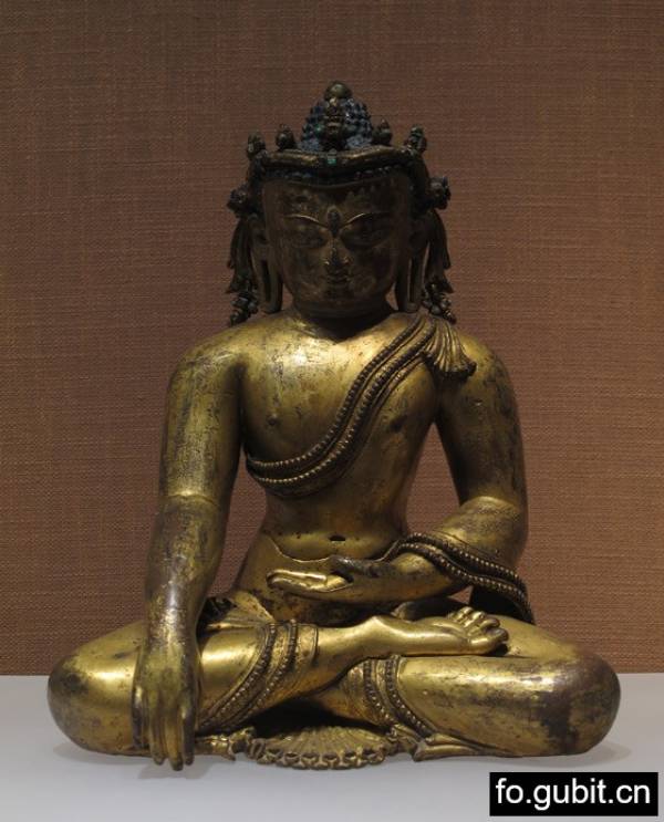 最上面的壁画是西藏日喀则夏鲁寺所拍到的。下面五尊铜鎏金雕像里,第一尊是四川博物院藏品,可能是释迦牟尼也可能是不动如来;其他四尊则是确定无疑的不动如来造像,现在都居住在首都博物馆。