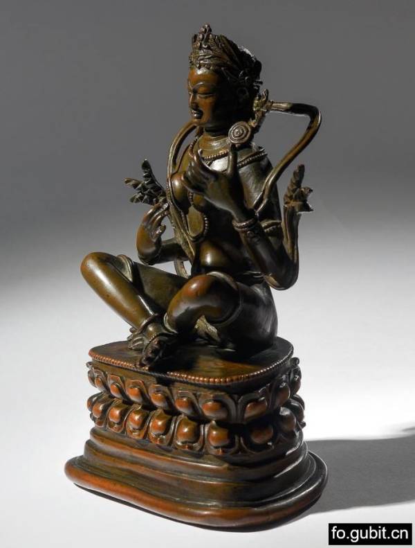 来源: 1、中国嘉德2013年秋拍,Lot5506,西藏17世纪铜妙音佛母 参阅: 1、北京瀚海2011年春拍,Lot2886,18世纪妙音佛母,成交价:RMB 368,000 2、北京瀚海2012年秋拍,Lot3225,17世纪妙音佛母,成交价:RMB 345,000