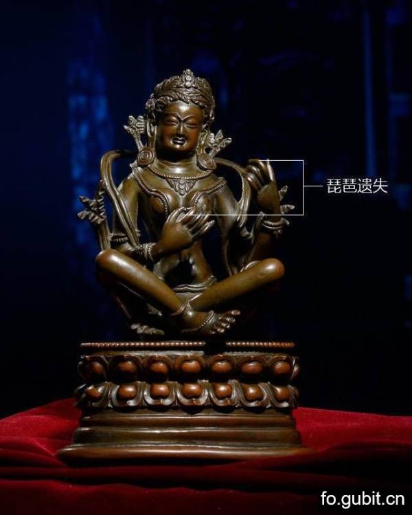 雪堆白是由五世达赖喇嘛在布达拉宫脚下建立的一个官办机构,机构以大量工匠构成,主要负责西藏政府机构及寺庙的金铜佛器的制作,相当于西藏的宫廷造办处。整个17至18世纪期间,该机构制作了大量的精美造像,此件妙音天女带有强烈的雪堆白风格,极具收藏与赏玩价值。妙音天女也称妙音天母、妙音佛母,是印度教与佛教共通的一位女神。也作为文殊菩萨的智慧显现,并为文殊菩萨其化身。在印度最古老的经典《梨俱吠陀》中就有对她的记载。她是创造之神梵天的妻子,一面四臂,四只手分别拿着念珠、《吠陀圣典》和印度传统的维那琴。她身着白色的衣服,端坐白莲花上,以天鹅或者孔雀作为自己的座骑。妙音天女在印度教中是作为学问、智能、艺术、音乐之神,通常受到学生、艺术家、音乐家的虔诚供奉。佛教将其收为自己的神祇之后,被作为藏传密宗的智慧本尊供奉,其形象一般作两臂持琴像,偶而也见四臂形象。艺术品不论年份,题材,产地,美是第一位,藏族藏家说的拿一尊早期帕拉、克什米尔佛也不换!