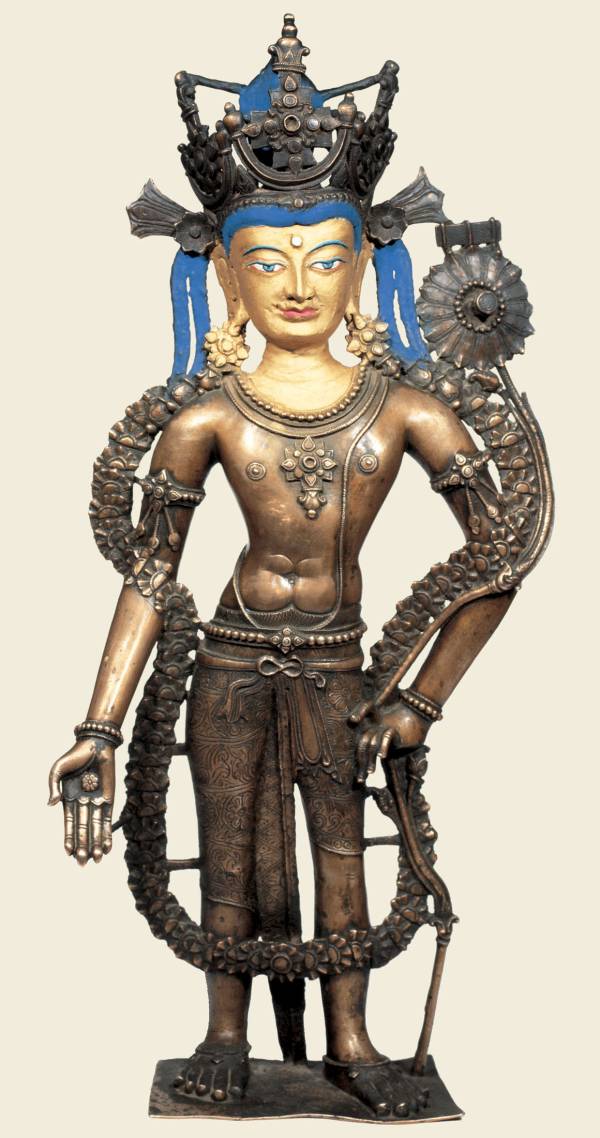 这尊文殊菩萨制作于藏西, 克什米尔风格, 位于拉萨大昭寺一层觉卧仁波且殿。