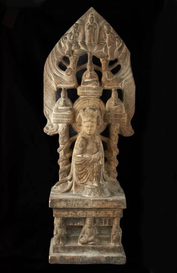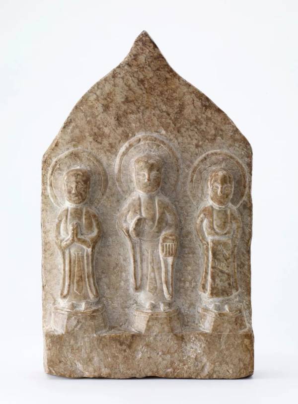 图6-3:Stele with a seatedbodhisattva flanked by standing bodhisattvas, in the style of Northern Qi (550~577)