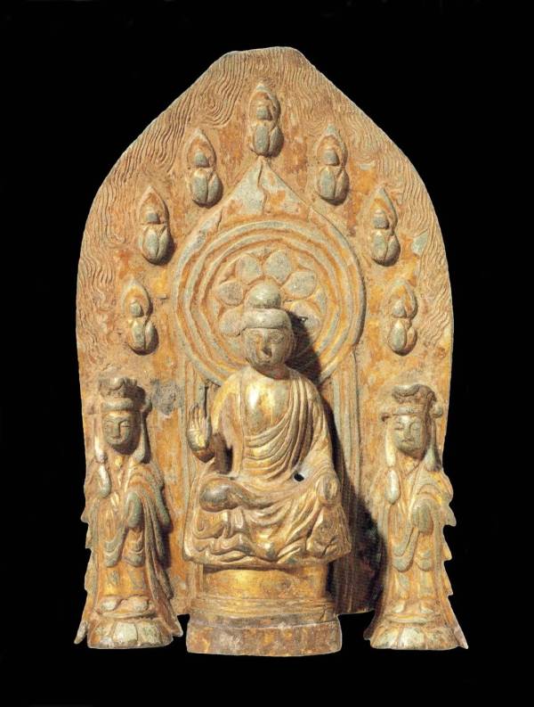 图6-4:Buddha triad and otherfigures, in Northern Qi (550~577)style